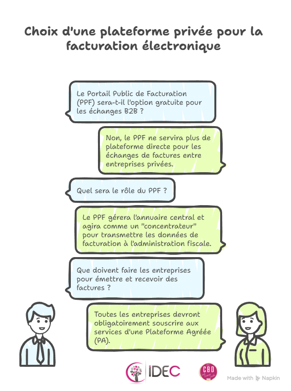 Dans les premières versions de la réforme, il était envisagé que les entreprises puissent passer directement par le Portail Public de Facturation (PPF), la plateforme de l'État. Beaucoup s'attendaient à ce que le PPF, évolution de Chorus Pro utilisé pour les factures vers le secteur public (B2G), devienne l'option gratuite pour les échanges entre entreprises privées (B2B). Ce n'est plus le cas. L'administration a clarifié le rôle du PPF, qui a changé de mission.